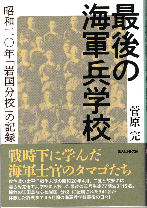 『最後の海軍兵学校――昭和二〇年「岩国分校」の記録』 潮書房光人新社(光人社NF文庫)/2022年8月/780円+税/ISBN:4769832788, 9784769832782 本著は、2015年に潮書房光人社から出版された『岩国分校物語――最後の兵学校生徒が綴る生徒館生活機」を若干加筆訂正し、『最後の海軍兵学校昭和二〇年「岩国分校」の記録』と改題したものである。