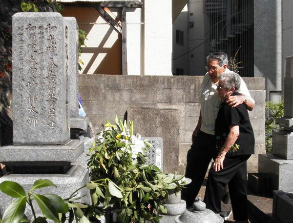The Tenneys making a visit to the late Mr. Tasaka's gravesite. |