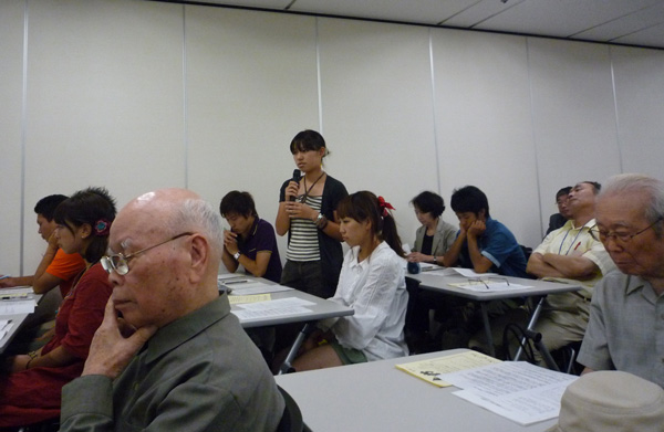 The meeting was held at 102 Conference room of the Members' Office Building of the House of Councilors. The former POWs and their family members, a total of 14 people, Chairman of Diet Members' League to Promote International Initiatives of Change , former Prime Minister Tsutomu Hata, 11 members of the House of Representatives/Councillors, former Secretary of the Japan Federation of Economic Organizations Mr. Yano, and members of the Foreign Ministry. A member of the House of Councilors, Mr. Yukihisa Fujita acted as master of ceremonies. A total of seven individuals attended from the "Japanese Society for Friendship with ex-POWs and families", the US-Japan Dialogue on POWs, and POW Research Network.
