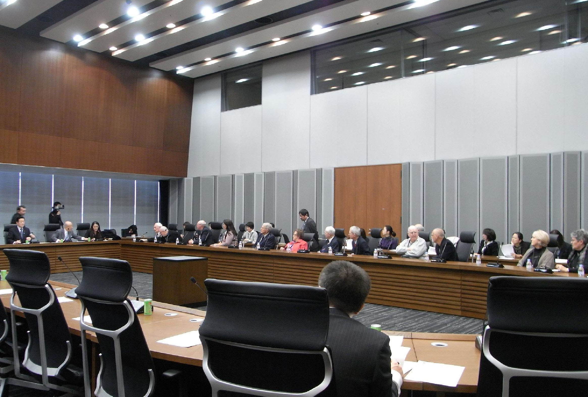 Courtesy Call on Minister for Foreign Affairs of Japan, Seiji Maehara. >>Jump Seminar hosted by Diet Members' League to promote International Initiatives of Change. Were invited by a group of all-party diet members (Mr. Yukihisa Fujita as a moderator) and talked about their POW experiences. |