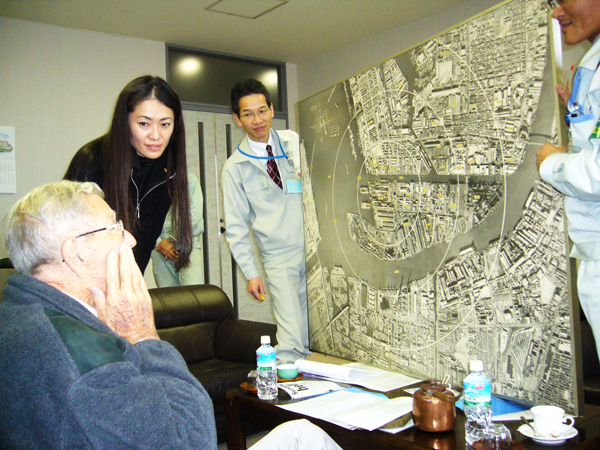 Mr. Harold Ramsey Yokohama city (the Tokyo No.14 Branch camp, Toshiba Tsurumi factory) - Niigata city (the Tokyo No.15 Branch camp) Mr. Norman E Anderton Hiroshima city (Hiroshima Peace Memorial Museum) - Kure city *Mr. Anderton was not interned to the camps in Japan. Mr. Jack Simmonds Osaka city (Hitachi Zosen Harbour construction office) Dr. Rowley Richards Sakata city, Yamagata Pref. (Sendai No.9 Branch camp) Mr. Fred Brett Saganoseki, Oita (Saganoseki finery of Nihon Kogyo, Fukuoka No.13 Dispached camp) *No POWRNJ member accompanied. |