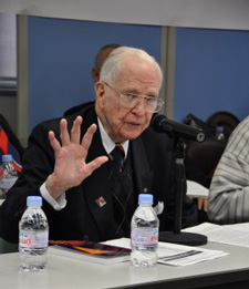 I do hope he can, with the new change in government...I hope he will be able to keep up the good work. Because I see this event of inviting the five veterans as a practical apology. It is the same sort of practical apology that the Research Group have been doing for many years. I congratulate them on their work in the past and bringing to fruition this last week, because I'm sure they had a big influence on the government. My colleagues have already spoken about some of the dreadful things that happened to our men and I do not propose to talk about that. I will propose to talk about the job of a medical officer who tried to keep people alive with inadequate food, very little medication and being forced to work when they were sick. The medical officers on the Burma railway...there were 43 Australian medical officers on the Burma railway...we received a great deal of praise for our work but I would emphasise that the praise should go to our medical orderlies. They were volunteers and mainly untrained. During the last few years, I've been thinking about what happened at the time. I have realised that my most difficult problem was playing the role of God. I had the responsibility of life or death for my men. I had the responsibility of deciding after just a few moments as they come to see me, making a decision whether they would go to...had to go to work or whether we could keep them in camp. Occasionally we would have a few eggs that would come to the camp and I would have to make the decision whether I give the egg(s) to this man who was going to die, or should I give it to this man who has a chance of living. That was a very difficult decision. The main medical problems we had were malaria, and in the group I looked after, they had an attack on an average of one a fortnight, one attack of malaria a fortnight. Malaria would make them sick, they couldn't eat, and dysentery would flare up, because everybody had dysentery, then following on would be an attack of beriberi, when they got swollen limbs, abdomen, and then they would be sent out to do heavy physical work and that was what killed most of them. It has often been commented on how remarkable it was that so many men died. From my experience, the remarkable thing is how very few died, compared to what could have happened. On the railway (we were there for about 18 months, into Burma and Thailand) in my group, we lost about 13% of men. Then, after the railway was finished we were formed into the party that was mentioned earlier to come to Japan as a working party. On the way, on the ship, the Rakuyo-maru, we were torpedoed and about 11% were picked up by very brave Japanese sailors. They were very brave because there were many submarines in the area. Some of the men used to say you could walk from Japan to America on the periscopes of the American submarines. Since the war I have tried to locate the family of the captain of the ship who picked us up, and the Network have been wonderful in helping me trying to find somebody. Kan Sugahara...I was hoping to meet him today. I was hoping to see him because has done a great deal of work in trying to find out who he was and where the family are. If anybody knows who was the captain of the ship or where the family are, please let me know, or let Kan know, and they can let me know, because I want to acknowledge the bravery of their captain.