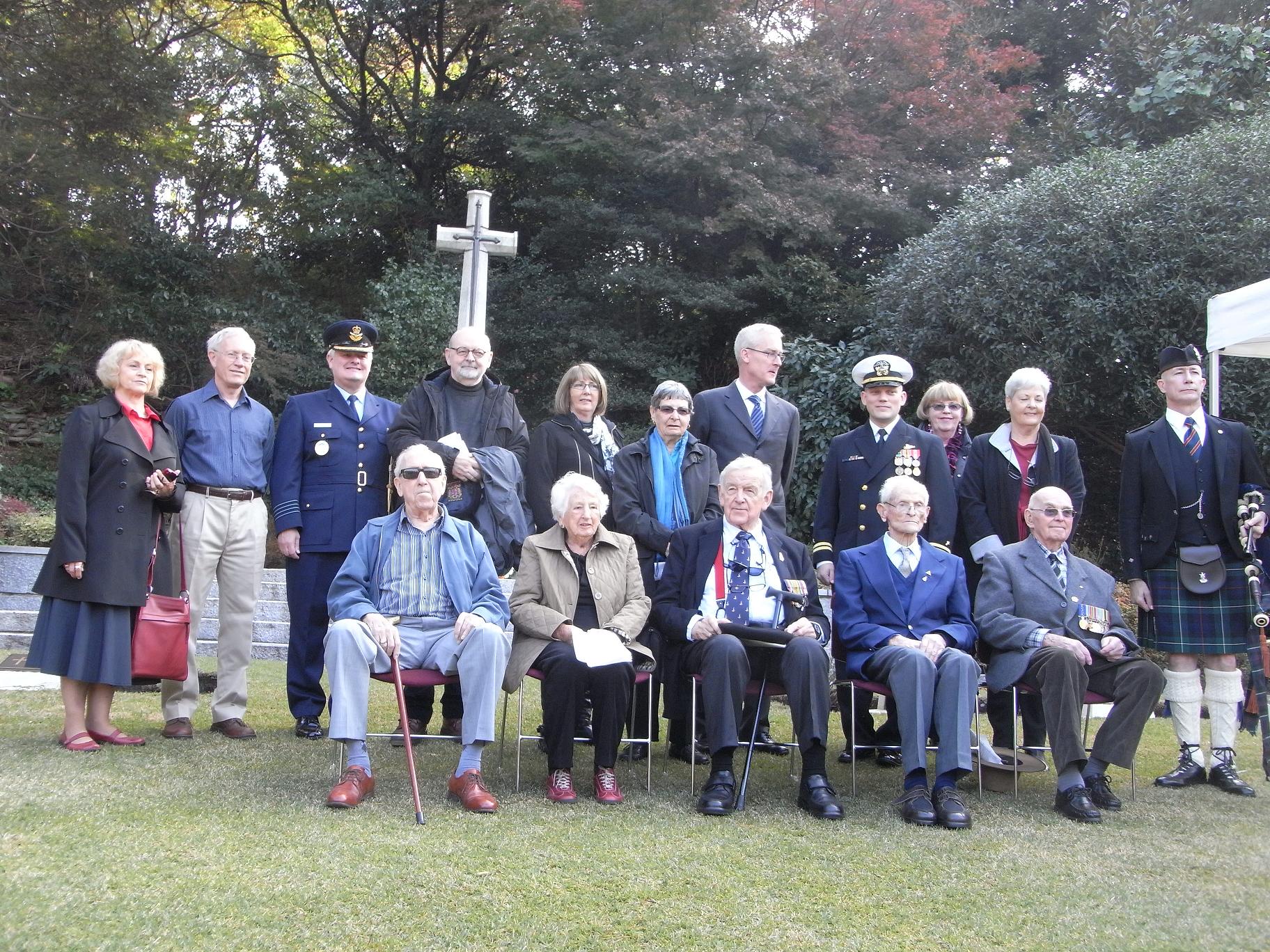A memorial service was held at the Australian section at 9:30 with attendance of the ambassador and an attache from the Australian Embassy. Each of the former POWs offered a wreath under the cross while a bagpiper was playing. They seemed to be so emotional. After the ceremony, they enjoyed tea and sweets warm-heartedly prepared by the Embassy. |