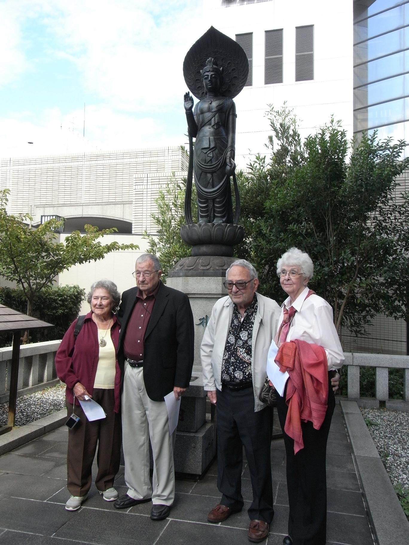 After the group had split up and visited different places throughout Japan, they reassembled in the evening of the 18th at the Granvia Hotel in Kyoto. Then in the morning of the 19th, staff members from Dentsu, nurses, Ms. Yukako Ibuki from the US -Japan Dialogue on POWs group, David Moreton and Toru Fukubayashi from the POW Research Network, went with the group to visit Ryozen Kannon.