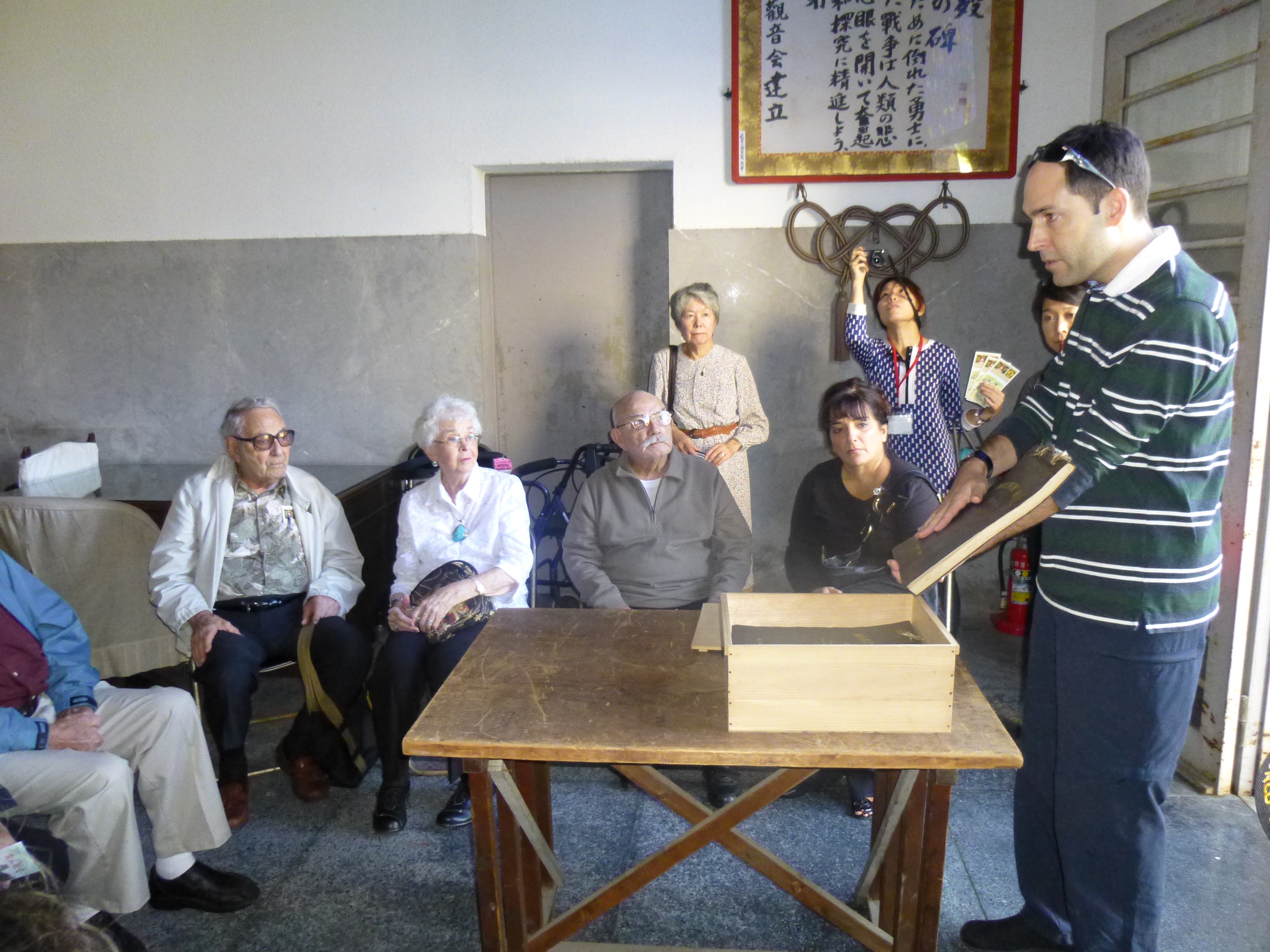 During the one-week stay the group members spoke at various public forums held in honor of their visit. All were very eager to share their war stories and many in the audience asked questions wanting to know more, so many times these events went well beyond the scheduled finish time. At the halfway point of their stay, they split up and visited sites around Japan such as Tokyo, Yokosuka, Niigata, Osaka and Yamaguchi to see the former sites of camps that they had been interned at and/or to visit sites where they been forced to work during the war.