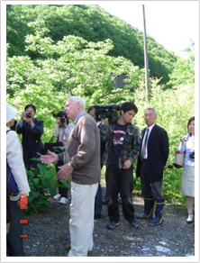 釜石市内の大橋収容所跡地にて |