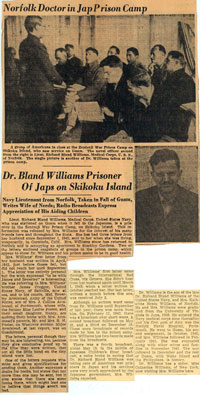 ウィリアムズ軍医が日本軍の捕虜として善通寺収容所に収容されていることを伝える故郷の新聞。 |