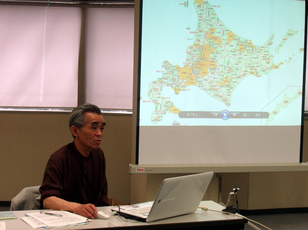 昨年『北海道の捕虜収容所』を出版した白戸仁康氏をお招きしてご講演いただいた。氏は、北海道史研究協議会、北海道文化財保護協会所属。主な編著書は『戦時外国人強制連行関係史料集』、『北海道と朝鮮人労働者』、『美唄市百年史』、『富良野市史』、『新札幌市史』など。北海道美唄市在住。以下は講演要旨。青字部分は報告者の感想。