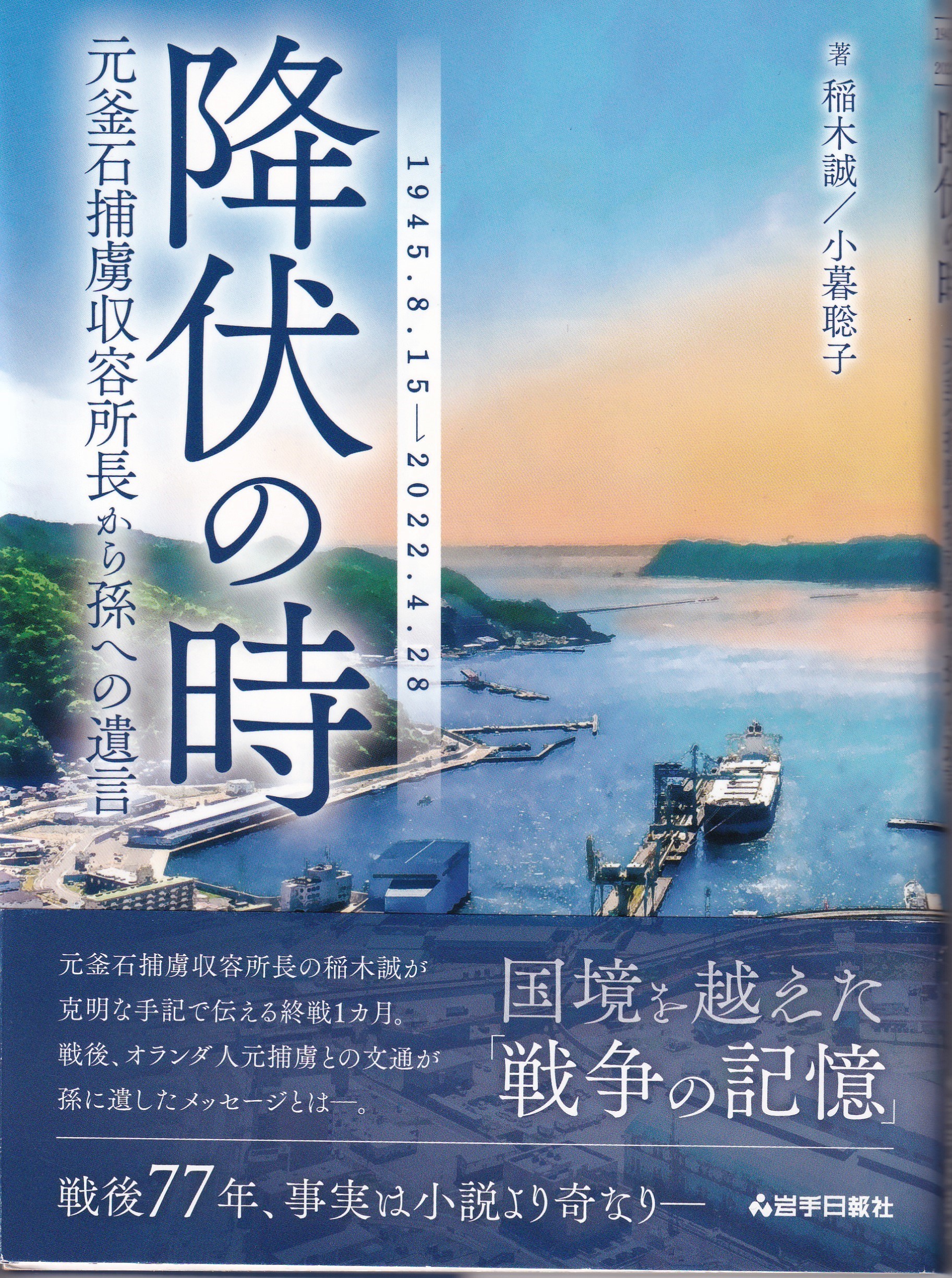 『降伏の時—-元釜石捕虜収容所長から孫への遺言』 岩手日報社/2022年4月/1900円+税/ISBN:978-4-87201-430-3 元釜石捕虜収容所長が克明に記した終戦後1カ月の手記。戦後、釜石市に届いた1通の手紙から始まった元捕虜との友情。そして孫が紡いだ奇跡のような出会いと絆。戦後77年、祖父から孫へと引き継がれた「戦争の記憶」を丹念にたどるノンフィクション。