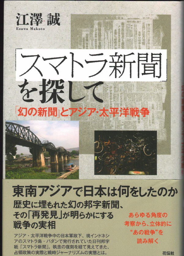 『「スマトラ新聞」を探して:「幻の新聞」とアジア・太平洋戦争』 花伝社/2022年6月/1800円+税/ISBN:978-4-7634-2013-8 邦字紙「スマトラ新聞」の復刻(2017年)が好意的に受け止められたのは、「幻の新聞」と言われていたスマトラ新聞故のことであった。しかし、「スマトラ」を知る人は少なく、スマトラ新聞に関しての包括的な解説を目指した復刻版解題であったが、復刻版の宿命として少部数・高額の刊行だったので、解題に記したことが広く認知されているとは言えない。そこで、スマトラ新聞の認知のために、復刻版刊行後獲得した知見を書き加え、普及しやすい書籍にして出版することにした。また、筆者が書いてきた原稿からアジア・太平洋戦争に関する小論を選び、本書は全体として、アジア・太平洋戦争期、場所は主に東南アジアに関する書籍とした。