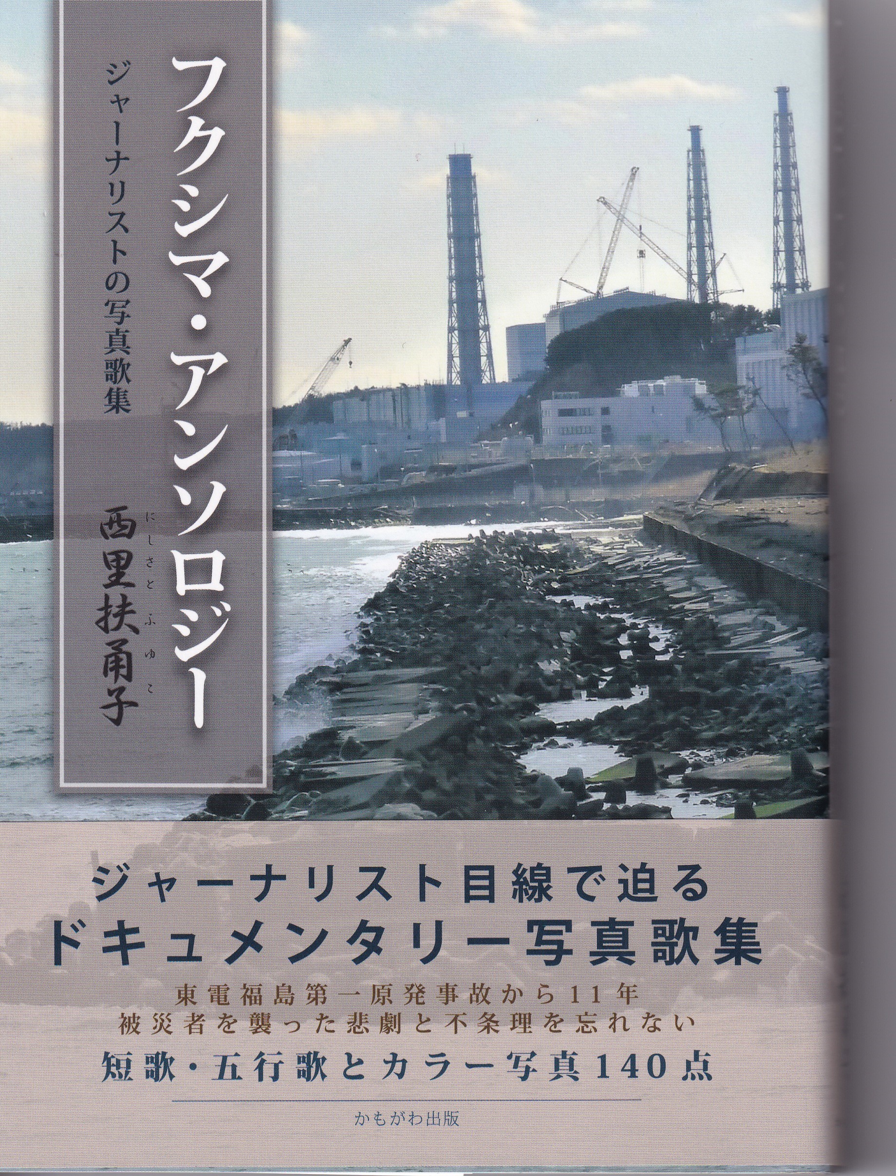 『フクシマ・アンソロジー:ジャーナリストの写真歌集』 かもがわ出版/2022年7月/1800円+税/ISBN:978-4-7803-1235-5 イチエフから放たれた放射線が我々の肉体を貫いたとき、脳幹にしまわれ硬い殻を被った我々の「まこと」は短歌に変化して、ファインダーの外に込められた見えざるものをあらわにする。恐怖、義憤、悲哀、慈愛……この十一年の見えざるものとの戦いを三十一文字やフレームの向こう側に見た(中筋純(写真家):本書帯より)。